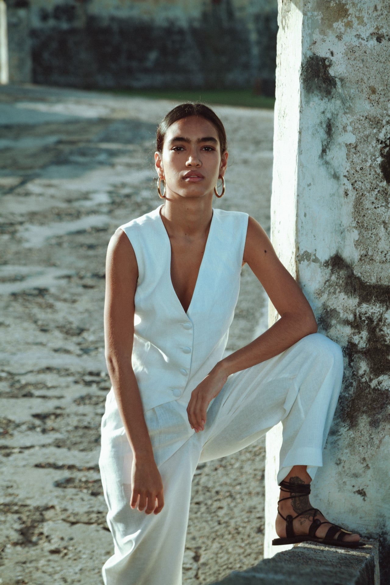 Las piezas de Sāncte se destacan por su elegancia simple y las buenas telas. Piensa en la residencia Esplugues de Xavier Corberó, o en las líneas refinadas de la arquitectura de Luis Barragán: los diseños de Sāncte siguen las mismas siluetas limpias y clásicas. Fundada por Tiffany Gutiérrez e inspirada en la arquitectura colonial y las tradiciones profundamente religiosas de Cartagena, la marca toma su nombre de la palabra latina "sagrado".