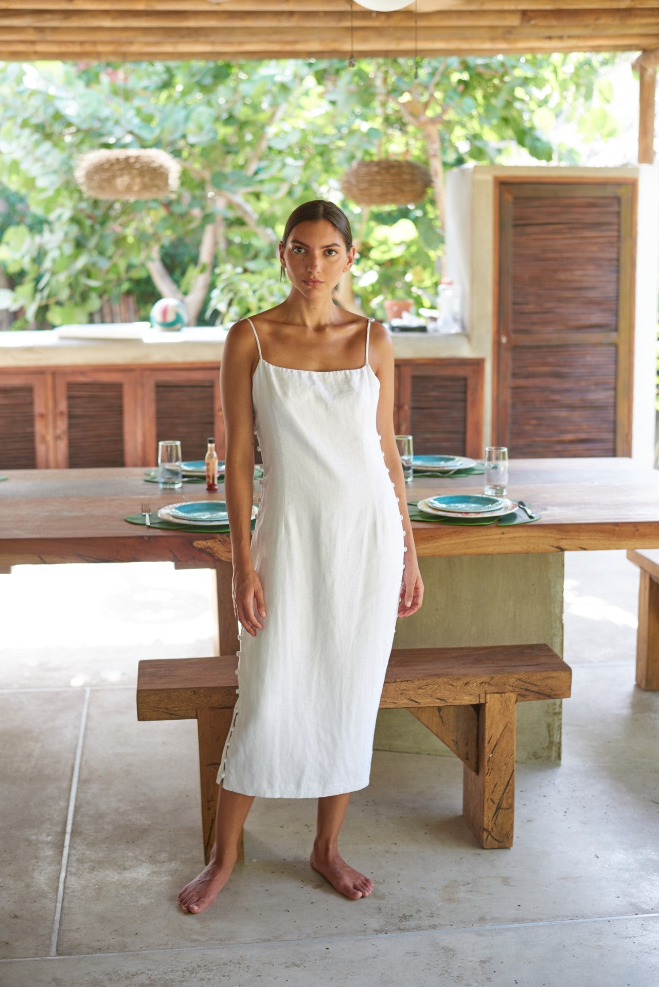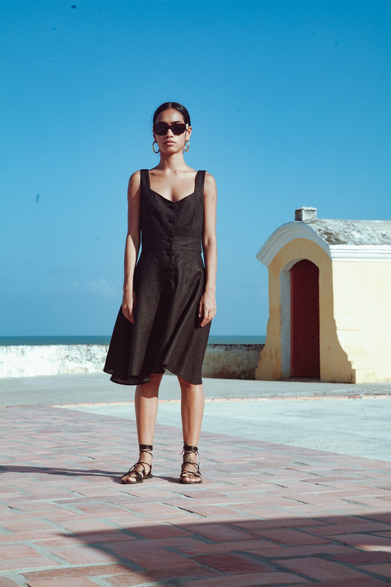 Cuando Gutiérrez regresó a Cartagena después de estudiar en Nueva York, se encontró recordando las pintorescas boutiques que frecuentaba en Manhattan y en las que se destacan la artesanía y el diseño de la simplicidad. Reinterpretando esa estética para su entorno tropical, Gutiérrez creó una etiqueta donde el lino de gran calidad es el último y único protagonista. Igualmente influenciada por sus viajes y su amor por la arquitectura, Gutiérrez se enfoca en diseñar piezas neutrales para cada ocasión. Estos van desde vestidos camiseros fluidos, pantalones anchos y faldas, hasta el versátil vestido cruzado Camelia.